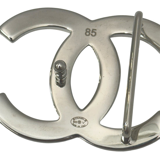 Authentic Chanel belt with iconic silver-tone interlocking CC buckle