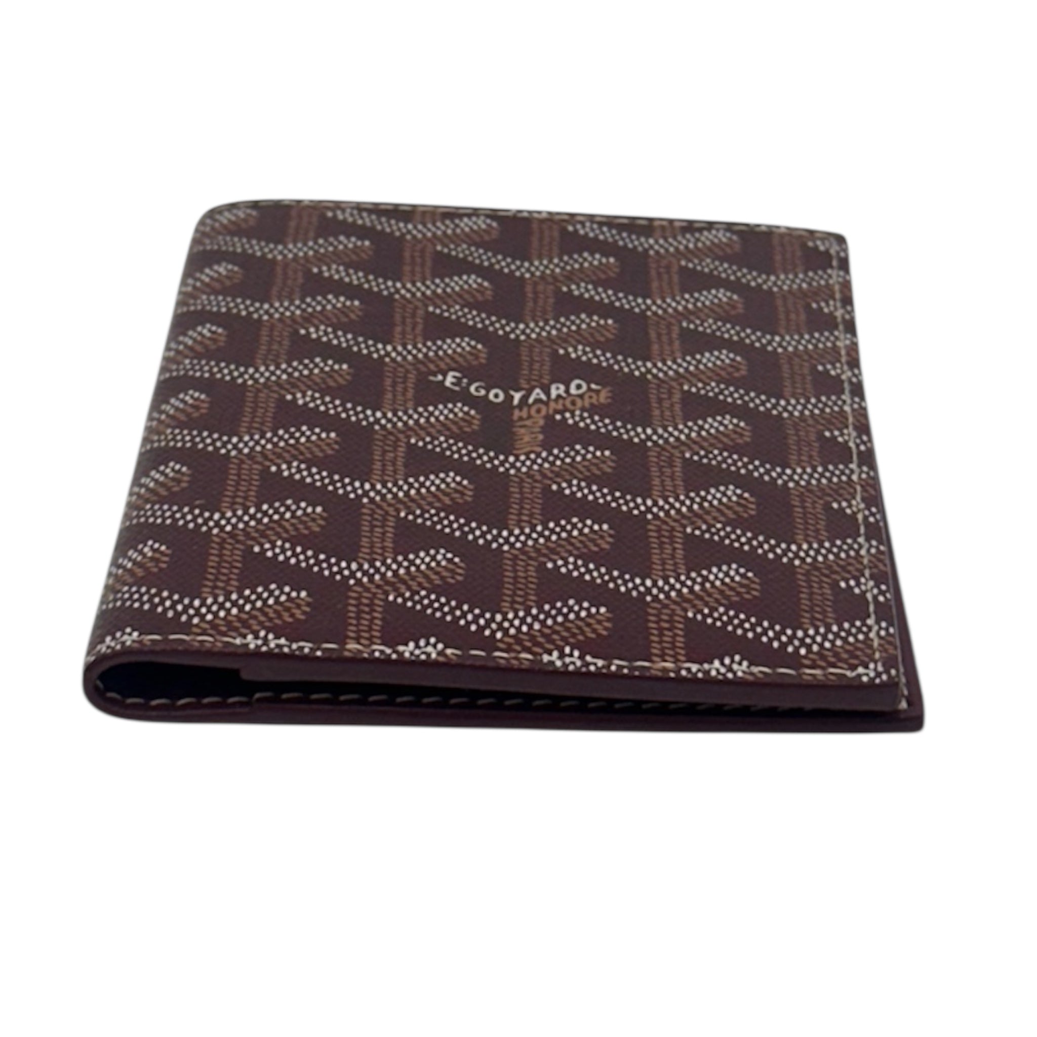 Elevate your everyday carry with the Goyard Saint Sulpice Card Holder, a timeless expression of French luxury and craftsmanship. Handcrafted in France, this slim bifold wallet features Goyard’s iconic hand-painted Goyardine coated canvas in rich burgundy, accented by white contrast stitching and a smooth leather interior for an elegant, structured finish.