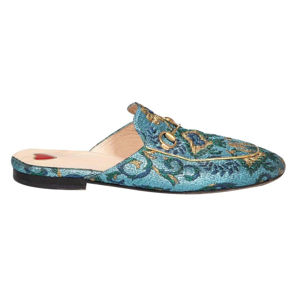Gucci Multicolor Brocade Fabric Princetown Horsebit Mules- 37.5