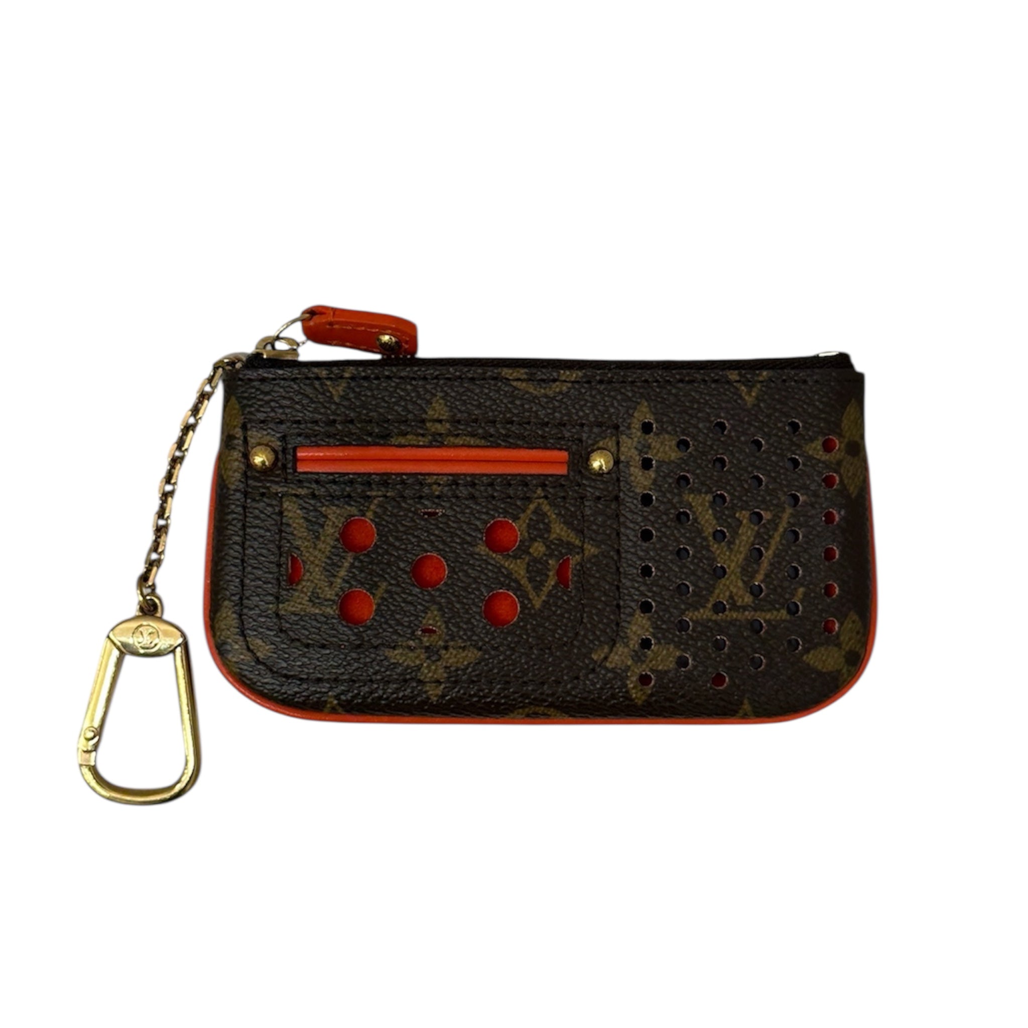Louis Vuitton Perforated Key Pouch in Monogram Canvas with Vibrant Orange Accents | Luxury Designer Keychain Wallet