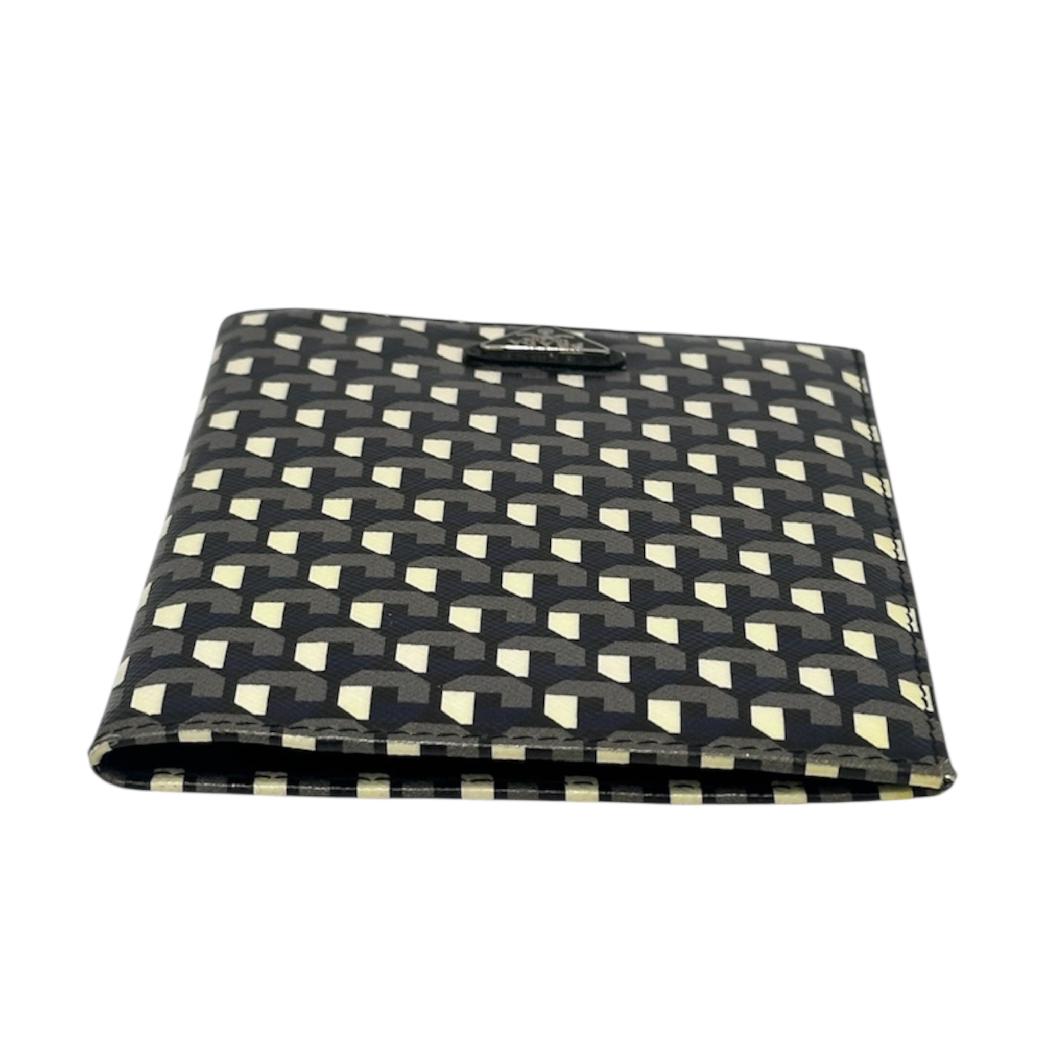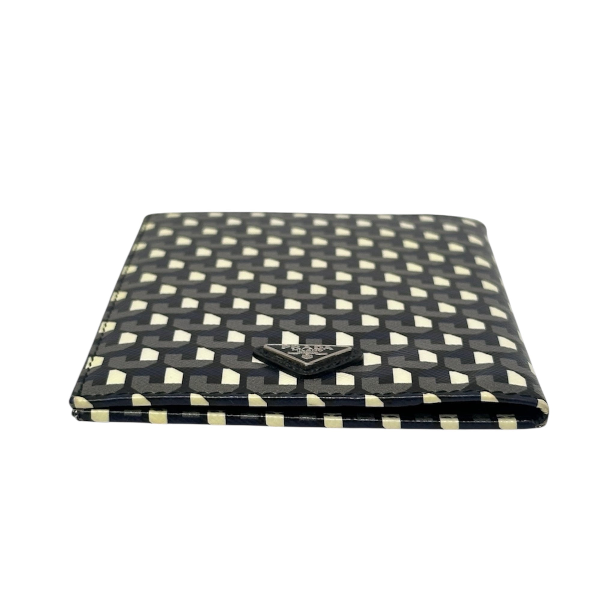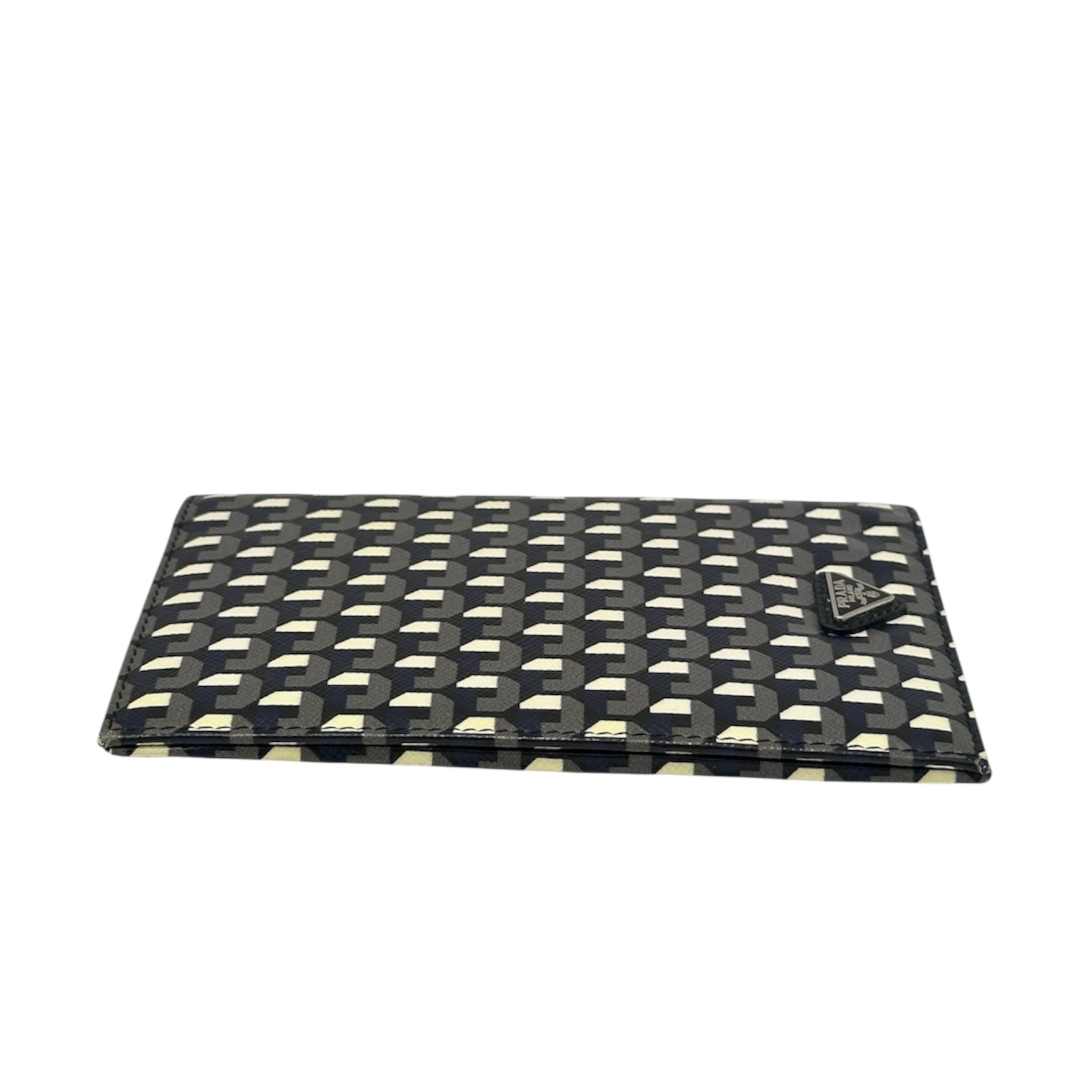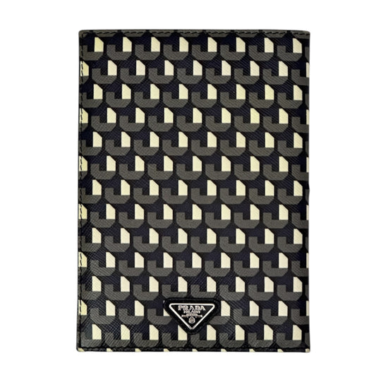 Prada Geometric Print Passport Holder – Black & Ivory Saffiano Leather Travel Wallet | Designer Travel Accessory