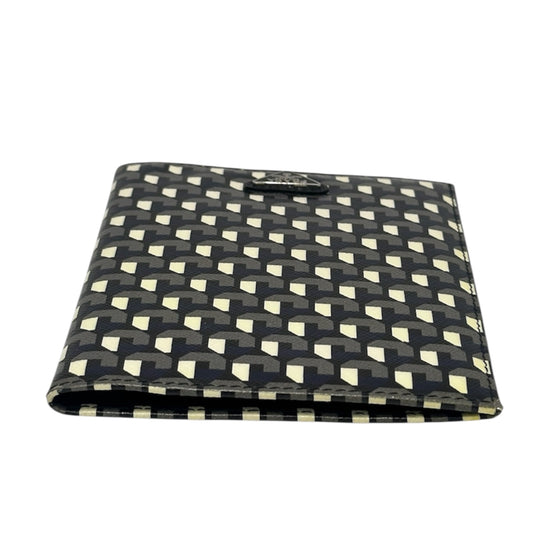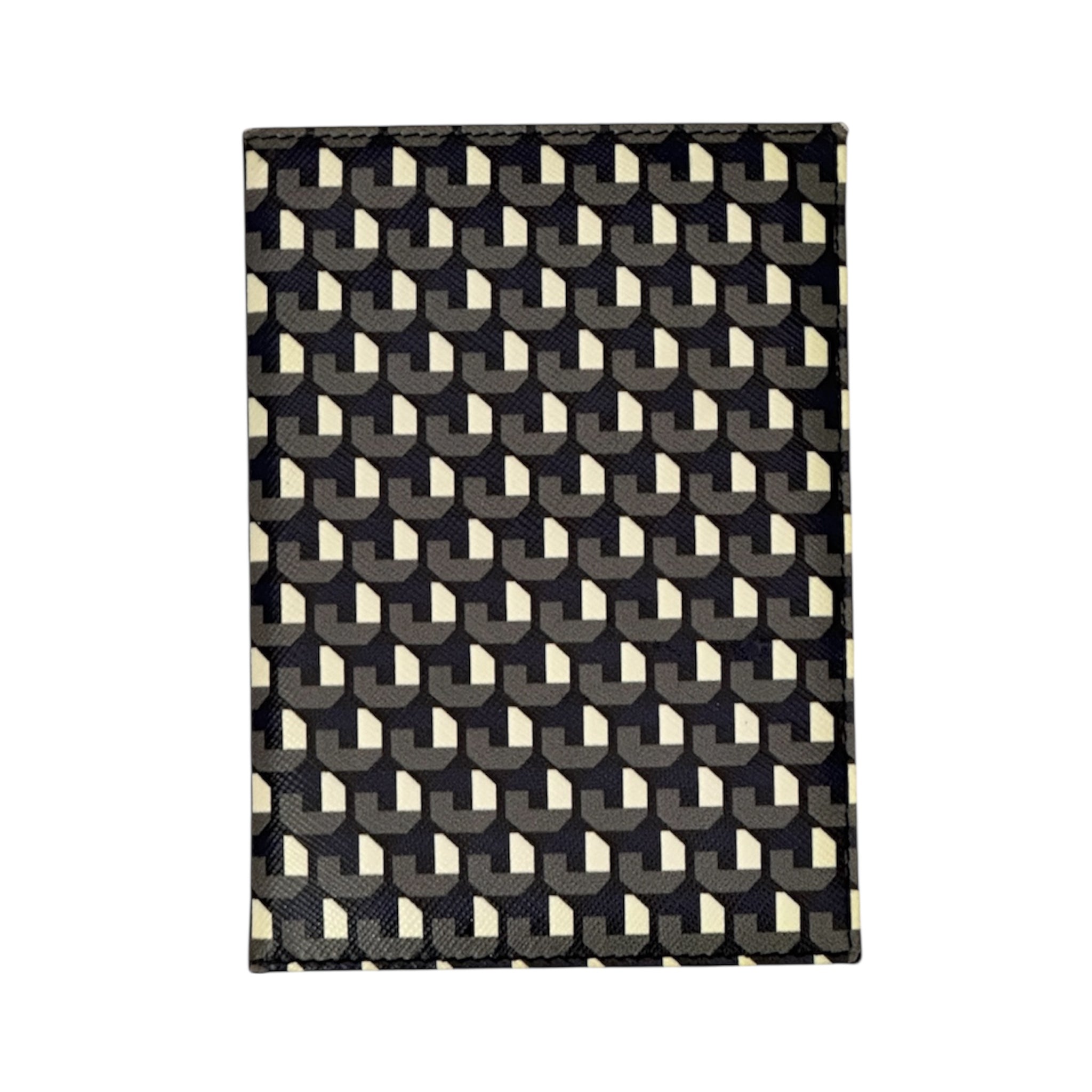 Travel in elevated style with this authentic Prada Geometric Print Passport Holder, a sleek and functional accessory crafted for the luxury jet-setter. Made from Prada’s signature textured Saffiano leather, this passport wallet showcases a modern geometric pattern in black, ivory, and grey—combining bold design with timeless sophistication.