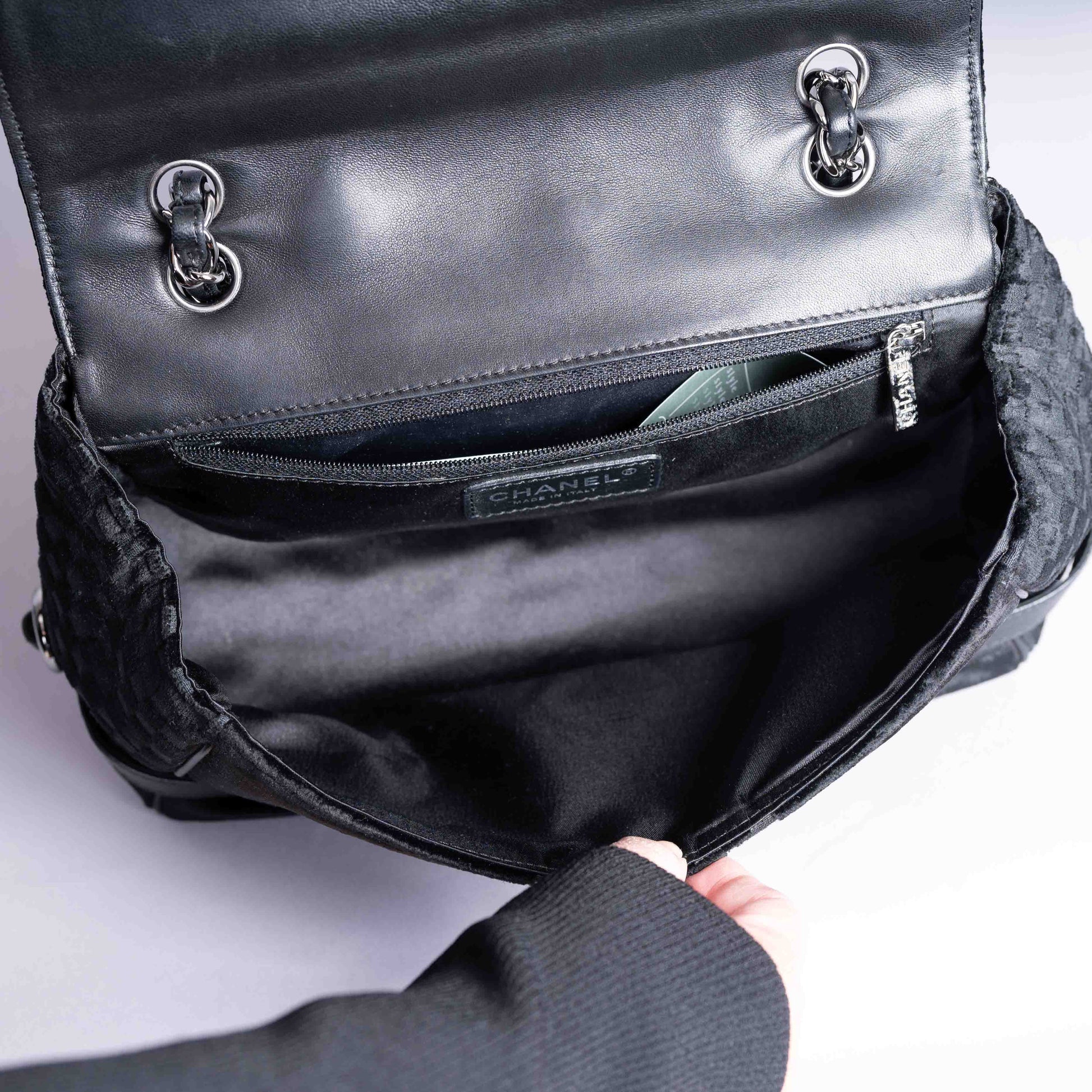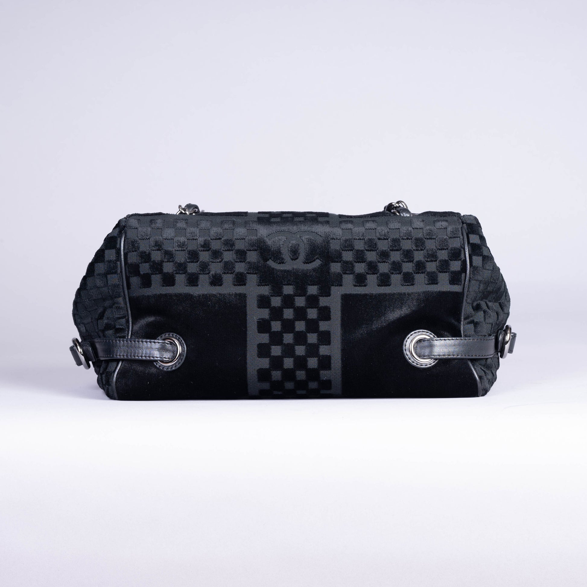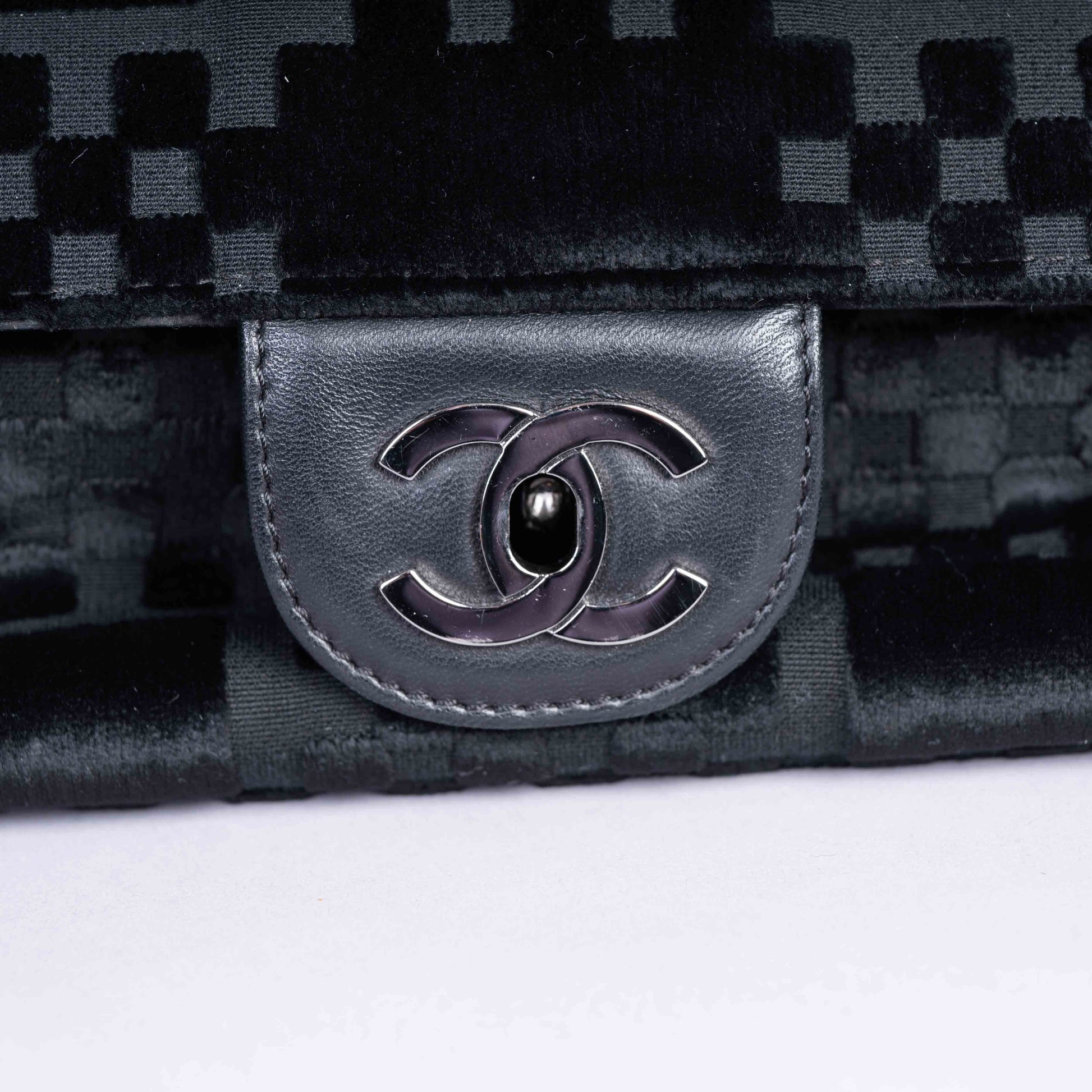 Pre-Owned Chanel Quilted Checkered Velvet Flap Shoulder Bag