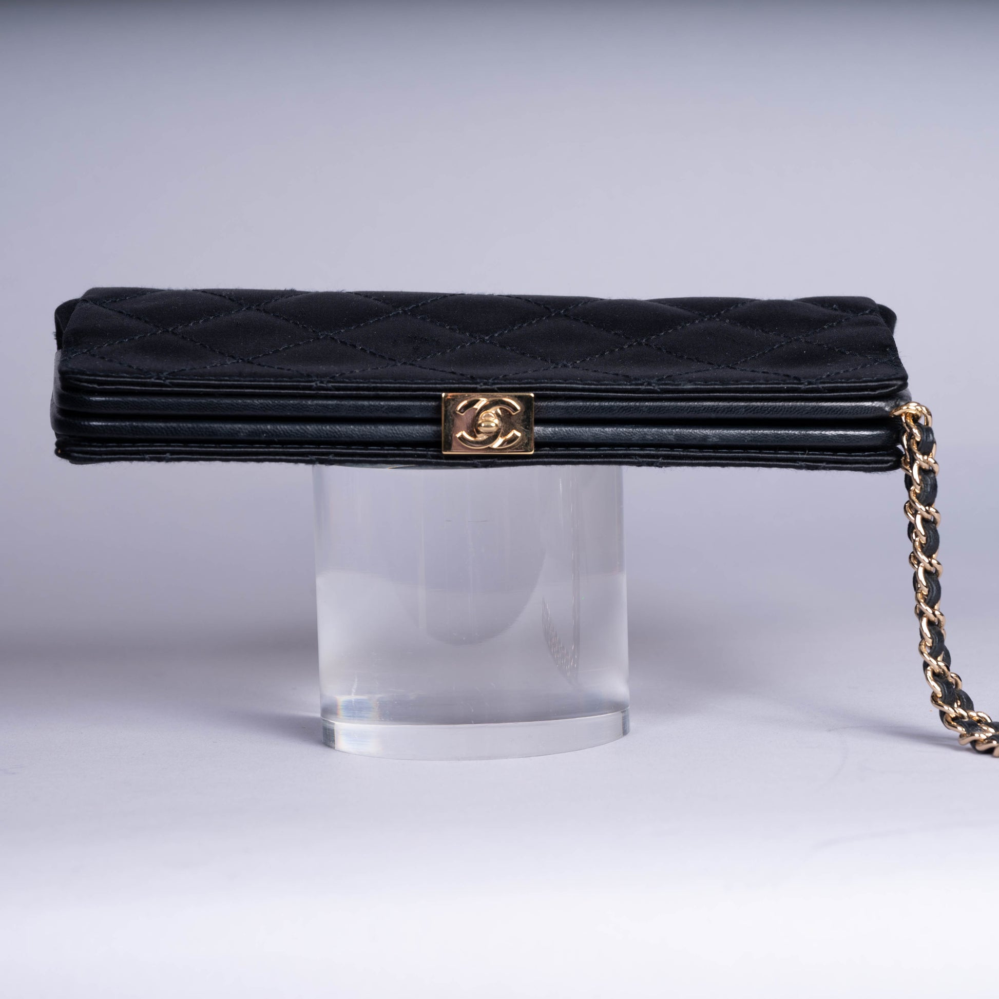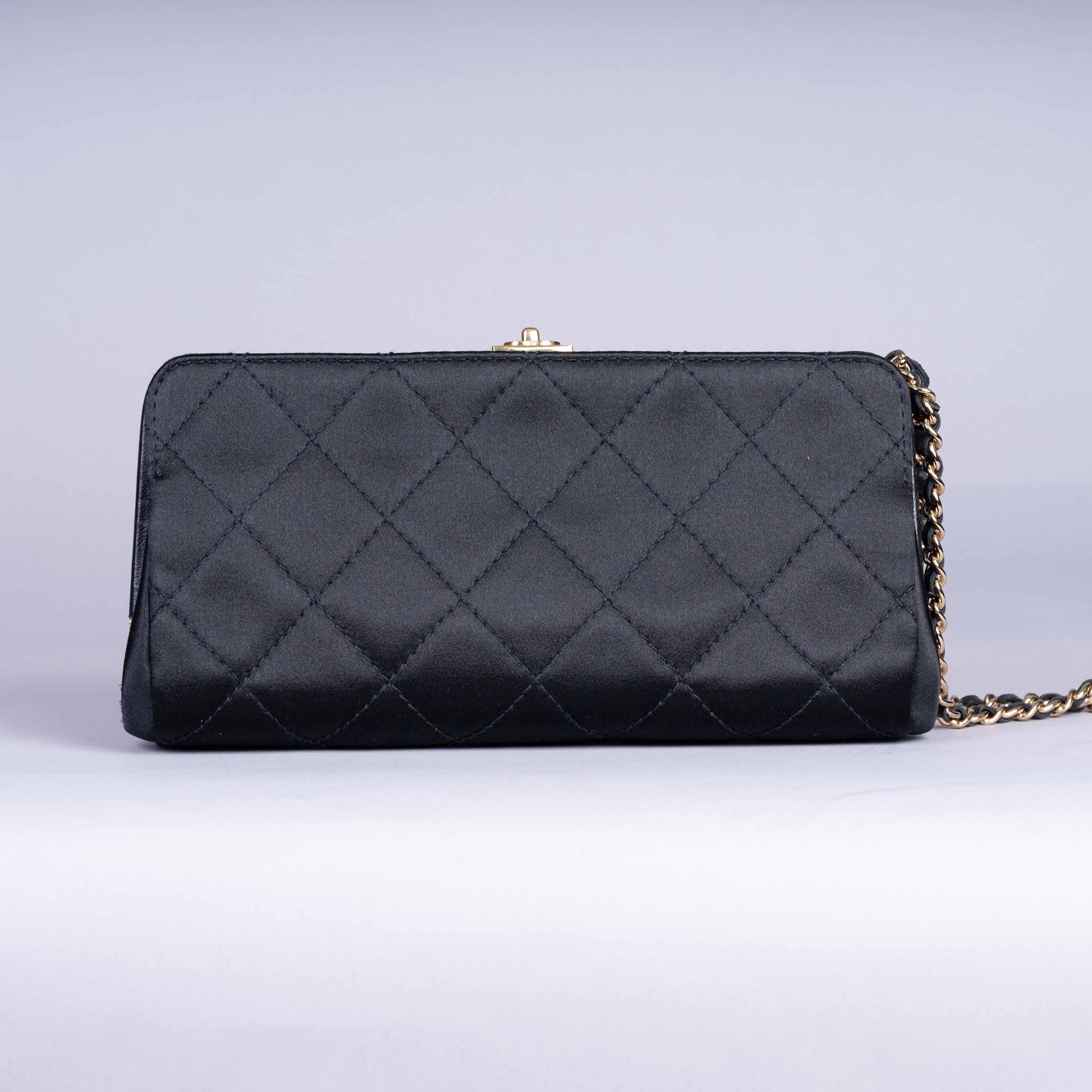 Pre-Owned Chanel Satin Clutch with 24K Gold Plating