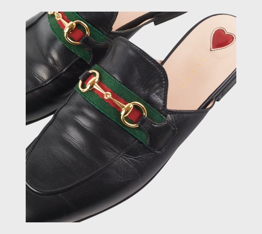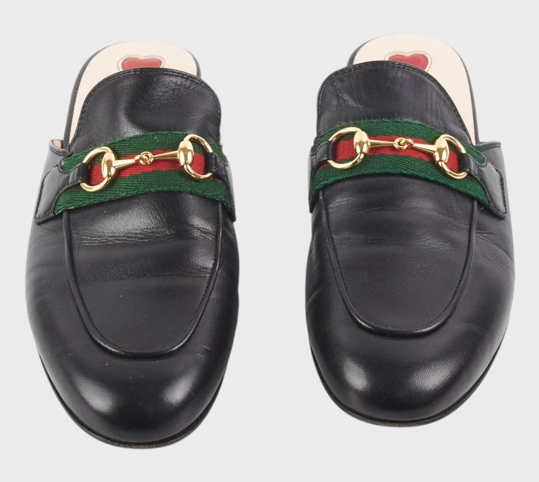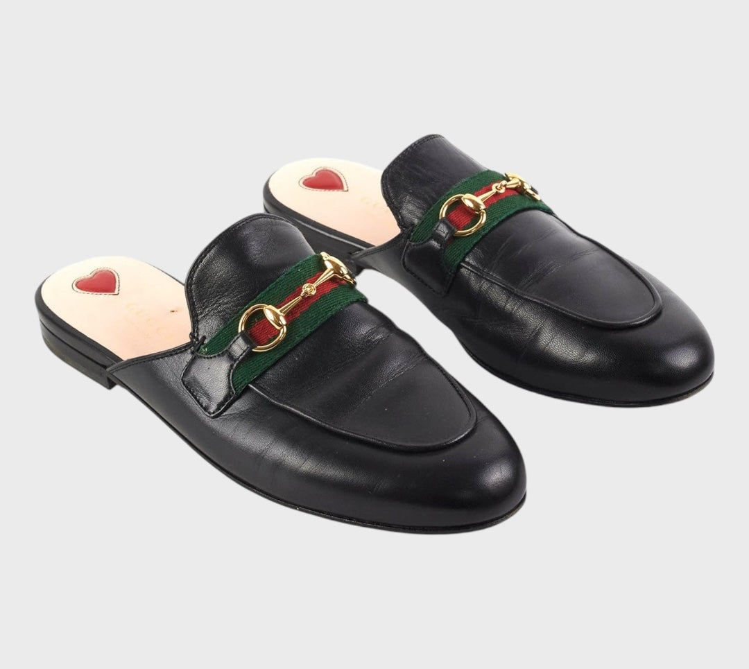 Slip into timeless luxury with the Gucci Princetown Leather Slippers in sleek black—because who says slippers can’t be glamorous? These iconic flats are effortlessly chic, blending classic sophistication with a laid-back edge. Crafted from smooth black leather and featuring the signature gold horsebit detail, they’re basically a fashion lover’s dream. Perfect for slipping on with anything from jeans to dresses, these size 40 beauties make every step feel like a runway moment. Comfortable, stylish, and oh-so-Gucci, these slippers are the ultimate in casual luxury!